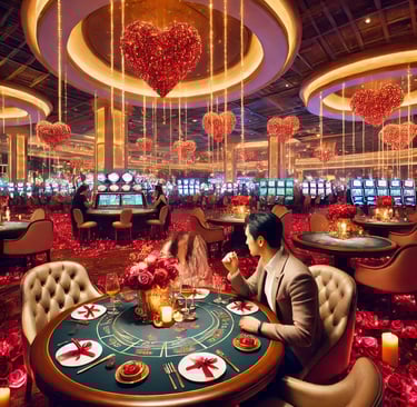 Indulge in a gourmet dinner at our luxurious on-site restaurant, where each meal is a perfect pairing with our meticulously selected wines. Post-dinner, take your sweetheart by the hand and enjoy an evening of games in our specially decorated casino floor, offering Valentine's Day specials on classic table games and slots.
